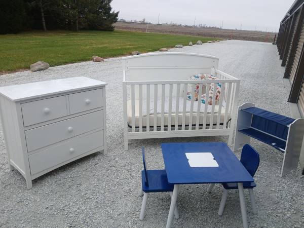 Baby bedroom set... Crib Crib mattress Boppy Dresser Diaper rack Table and 2 chairs Asking $200 for all OBO Serious inquiries only CASH PAYMENT ONLY!! NO SCAMMERS (you will be blocked)