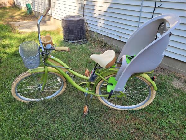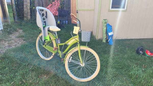 Selling a gently used women's bike. Includes child seat for mom and kiddo to ride together. Free helmets with sale. Good condition, used a few times.