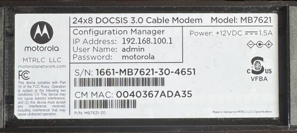 Motorola MB7621 Cable Modem https://www.amazon.com/dp/B077BL65HS/ Linksys AC1900 Wi-Fi Wireless Router (EA6900) https://www.amazon.com/dp/B00EXK14S0/ Both used in excellent working conditions.
