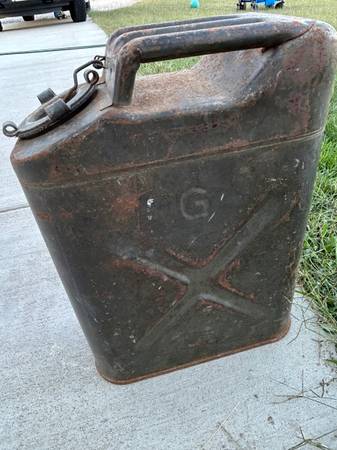 This Jerry gas can looks like one that was manufactured near theKorean War time frame 1952-1957. Good condition for its age Pick up in Lafayette Indiana Cash only please